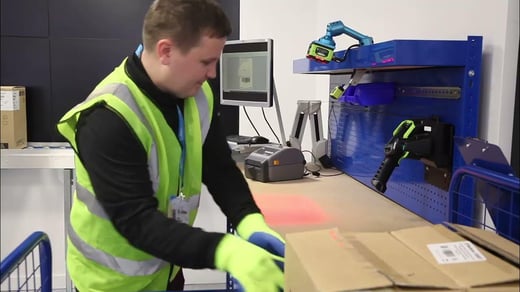 Ayuda a tus clientes a reducir en un 20% el tiempo de empaque en mesa con los scanners fijos industriales de Zebra FIS FS10/FS20/FS40. Permite que los empacadores tengan las manos libres, ya que el scanner se encuentra fijo y en posición para que el operador acerque los productos y se lean, en la orientación que sea, y a diferentes distancias.