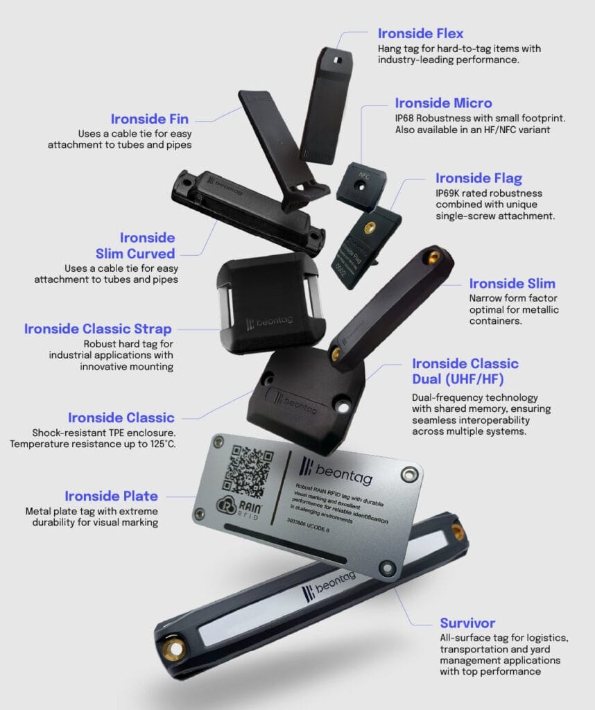 Con múltiples formatos y tecnologías disponibles (UHF, HF/NFC y dual-frequency), los tags Ironside de Beontag permiten implementar proyectos de trazabilidad confiables, estables y escalables en cualquier industria.